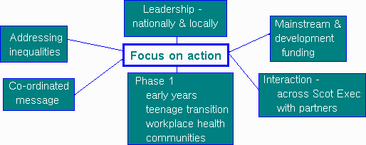 This is not about the production of reports; there are many of them already. The Executive is now saying "do something practical about it". It is the widest possible definition of health improvement, including environment, housing etc..It will take time to get it up and running. Television adverts on diet have started and a major campaign on exercise is due later this month.