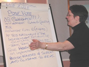 This report is taken from notes made during the course and accurately reflects the course, to the best of my knowledge. The main outcome from the course should be the Amicus Plan for the NHS in Scotland for 2003. Sharon Riddell, the facilitator for the course, opened the course The course itself took place in the Queens Hotel, Perth. |